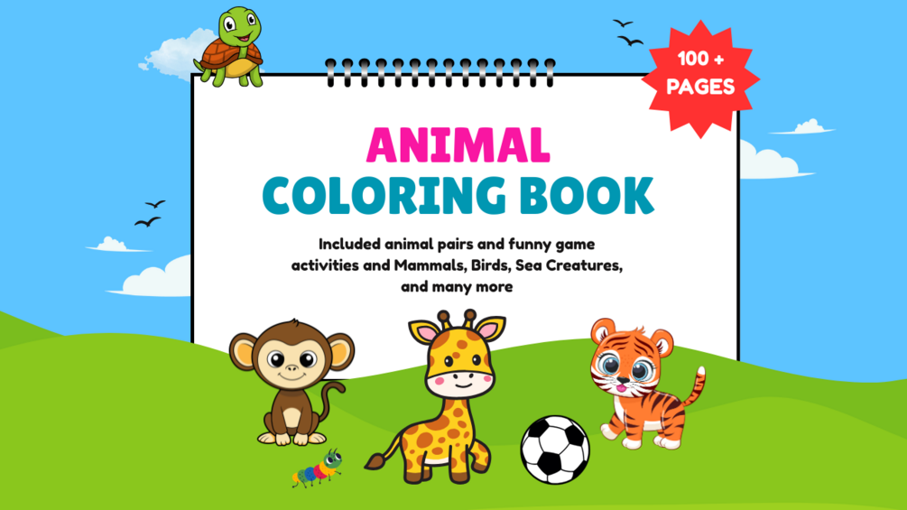 Let your kids explore the animal kingdom with this fun and printable Animal Coloring Book (PDF Download). With 100+ pages, this digital book is packed with adorable and exciting animals to color at home or on the go.